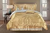 .../ King Size Bedding-7 Pieces Super Soft Solid Gold and Sliver Reversible Fine Satin Comforter Set Bed-in-a-bag / Gold Comforter